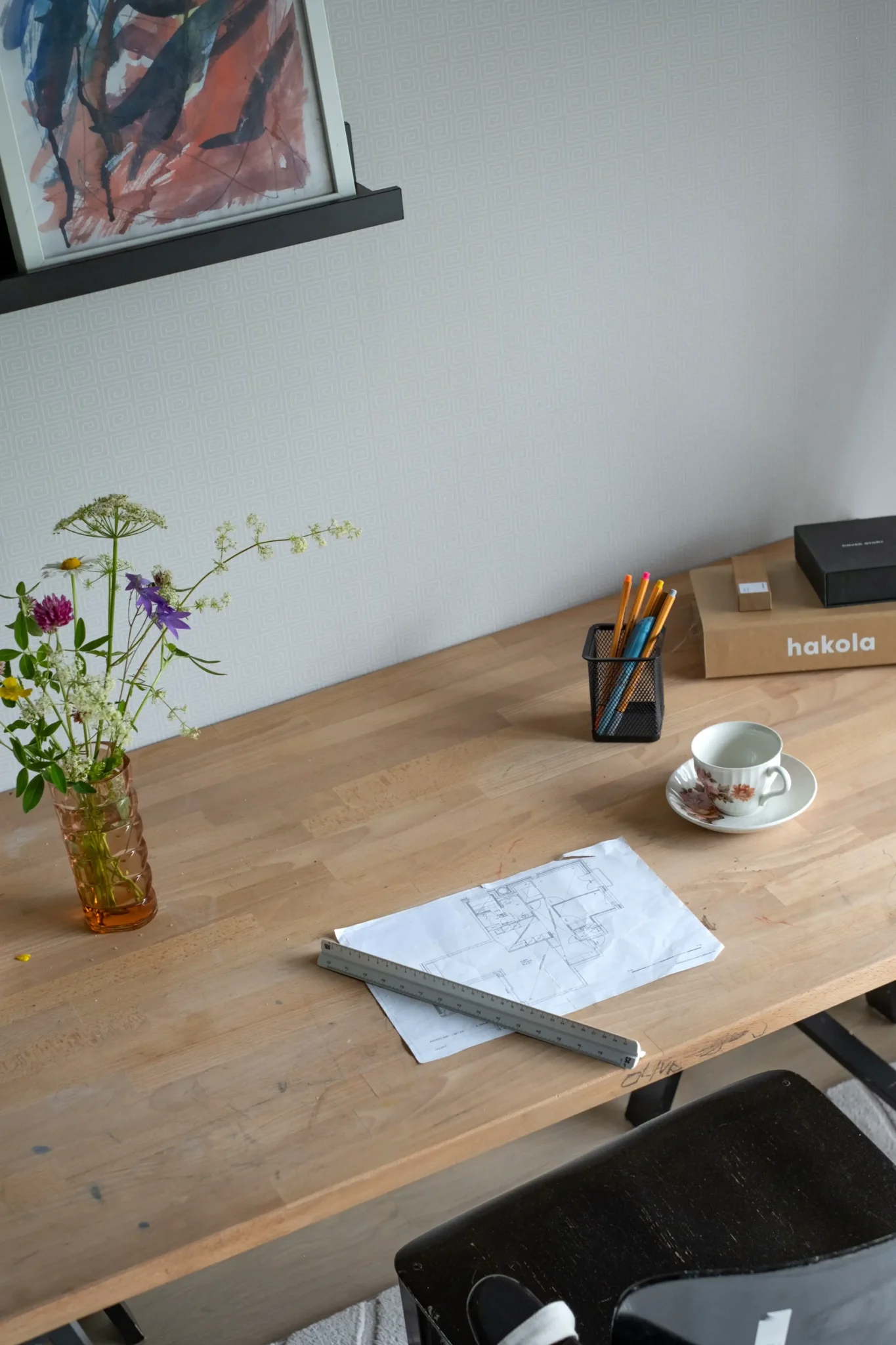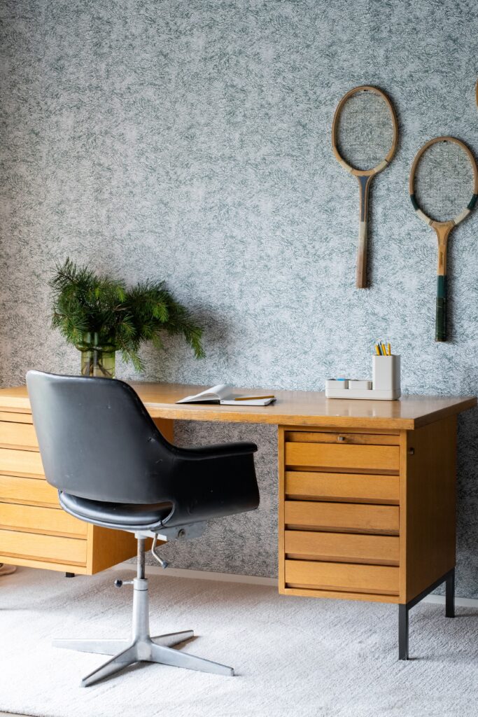 Työhuoneen tapetti on voimakas tunnelmanluoja. Se voi rauhoittaa, energisoida tai tuoda juuri sen rytmin, jonka avulla työskentely sujuu vaivattomasti. Harkittu tapetti työhuoneen seinällä tekee tilasta henkilökohtaisen – paikan, johon on ilo istahtaa aamuisin ja josta on mukava sulkea kone päivän päätteeksi.