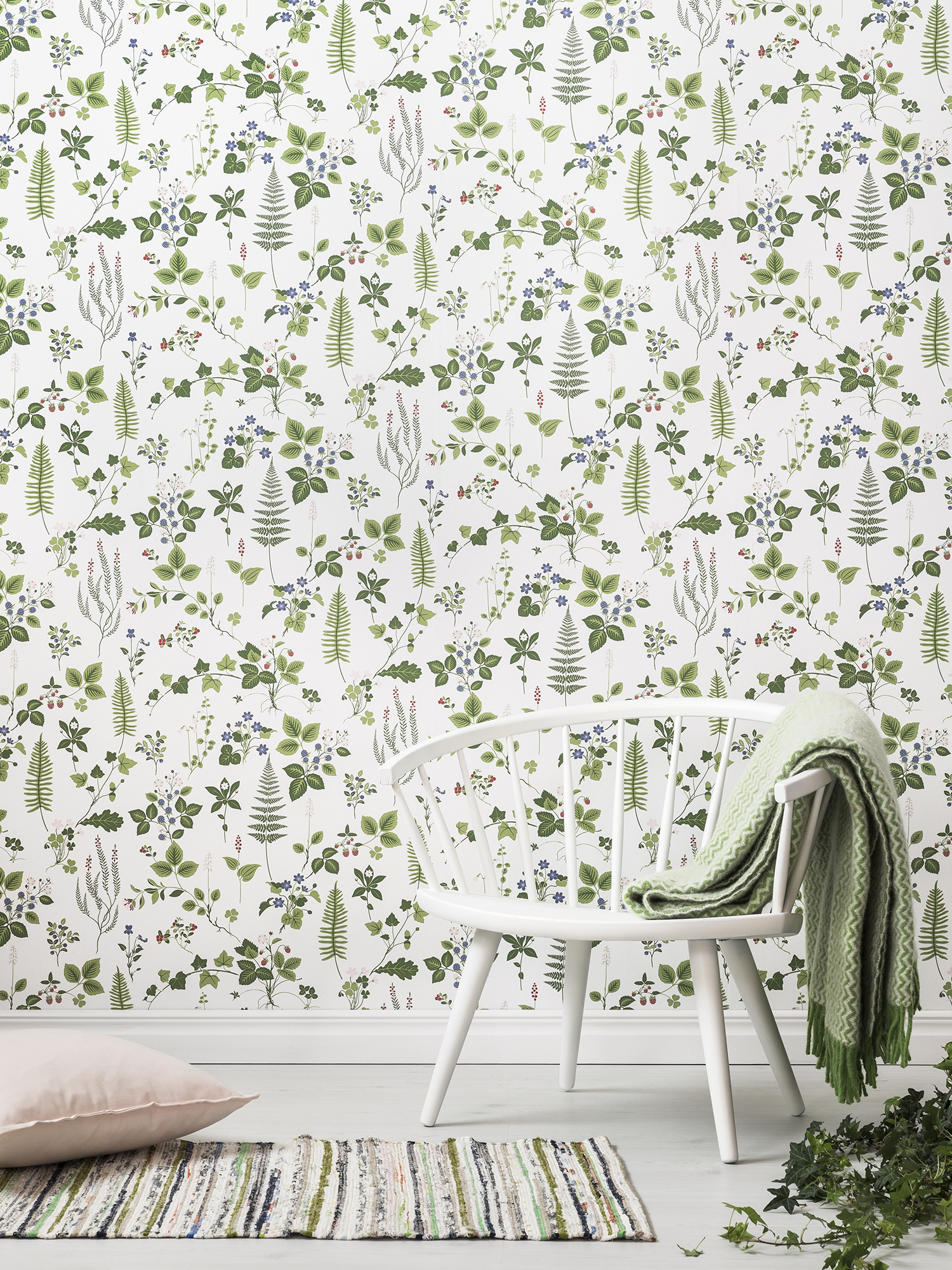 Metsäpolku-mallisto on saanut inspiraationsa suomalaisesta luonnosta. Malliston tapeteissa toistuvat tutut kasvit valkoisella pohjalla, mikä luo rauhallisen ja harmonisen tunnelman. Tapetit sopicat erinomaisesti moniin kodin tiloihin, kuten makuu- tai olohuoneeseen.