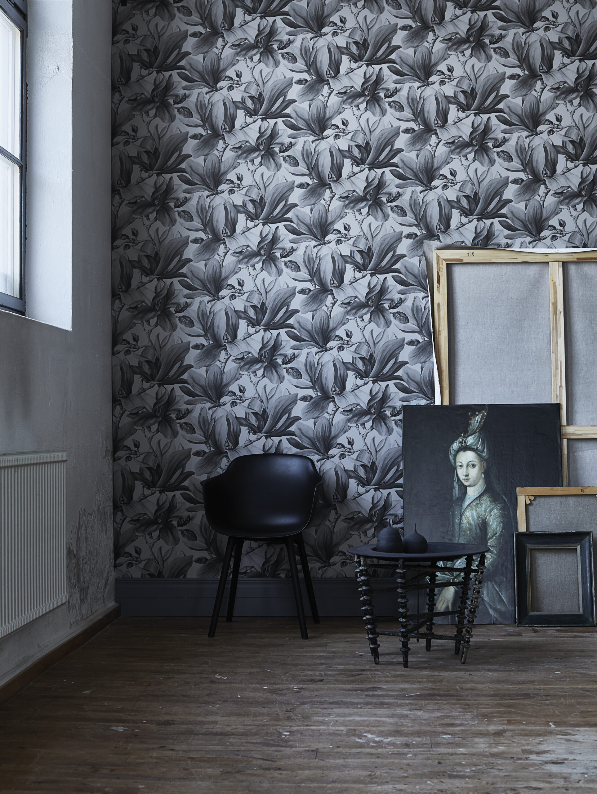 Tämä näyttävä tapetti tekee seinästä todellisen katseenvangitsijan. Suuret, taidokkaasti varjostetut kukat luovat syvyyttä ja dramaattisuutta, joka tuo tilaan vahvan ja tyylikkään ilmeen. Mustavalkoinen värimaailma tekee kuosista ajattoman ja helposti yhdisteltävän eri sisustustyyleihin – se toimii yhtä hyvin modernissa loft-asunnossa kuin klassisessa kodissa. Tämä tapetti tuo seinälle taideteoksen kaltaista eleganssia ja voimaa.