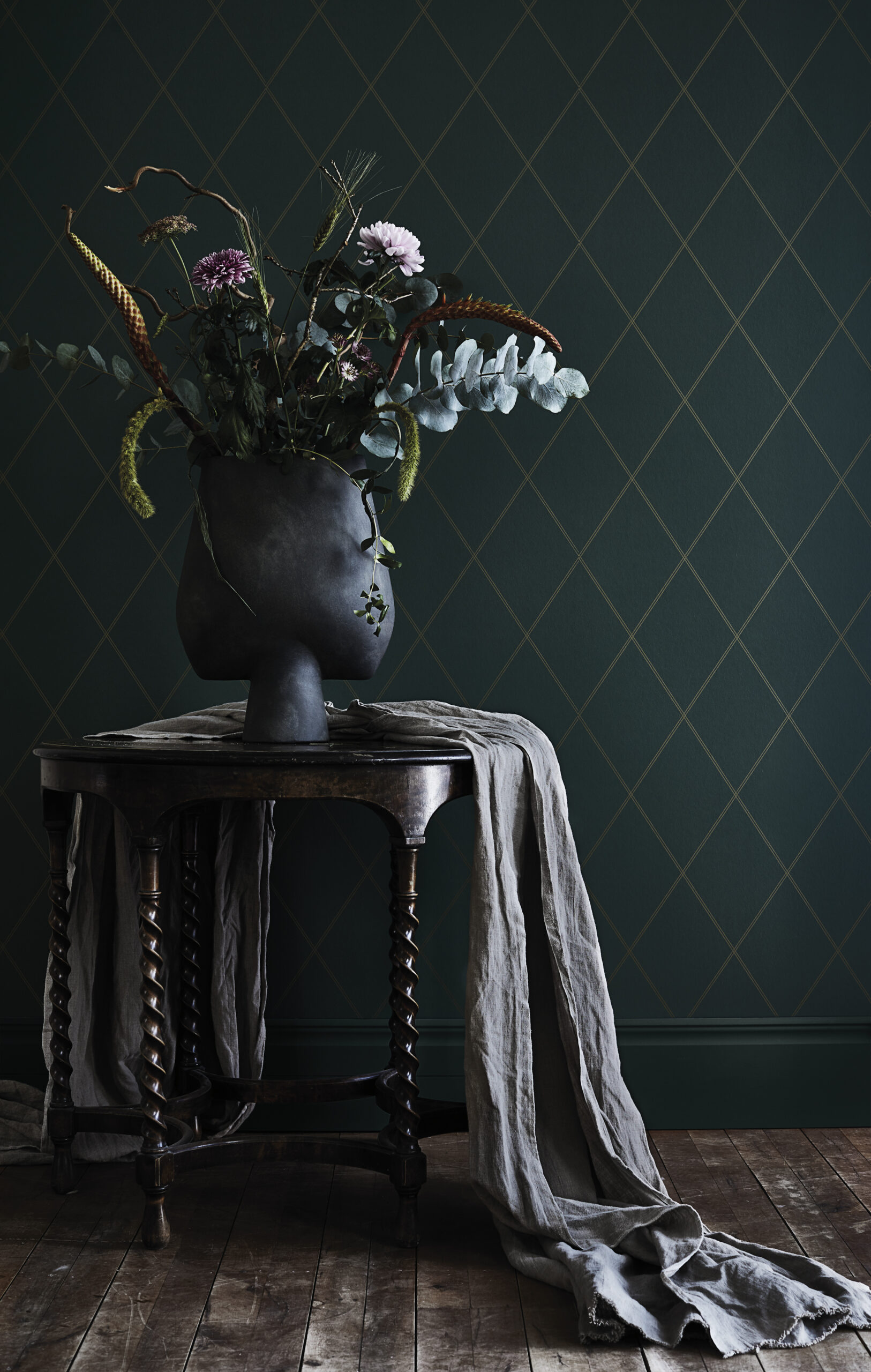 Tämä harmonisen vihreäsävyinen tapetti huokuu luonnonläheistä rauhaa ja ajatonta tyylikkyyttä. Pehmeä mattapinta ja hillityt, kultaan taittuvat viivat muodostavat hienostuneen ruutukuvion, joka tuo seinään syvyyttä ja arvokkuutta ilman liikaa näyttävyyttä. Tapetti sopii täydellisesti tiloihin, joissa kaivataan seesteistä ja tasapainoista tunnelmaa – esimerkiksi makuuhuoneeseen, ruokailutilaan tai työhuoneeseen. Se on valinta, joka kestää aikaa ja katseita.