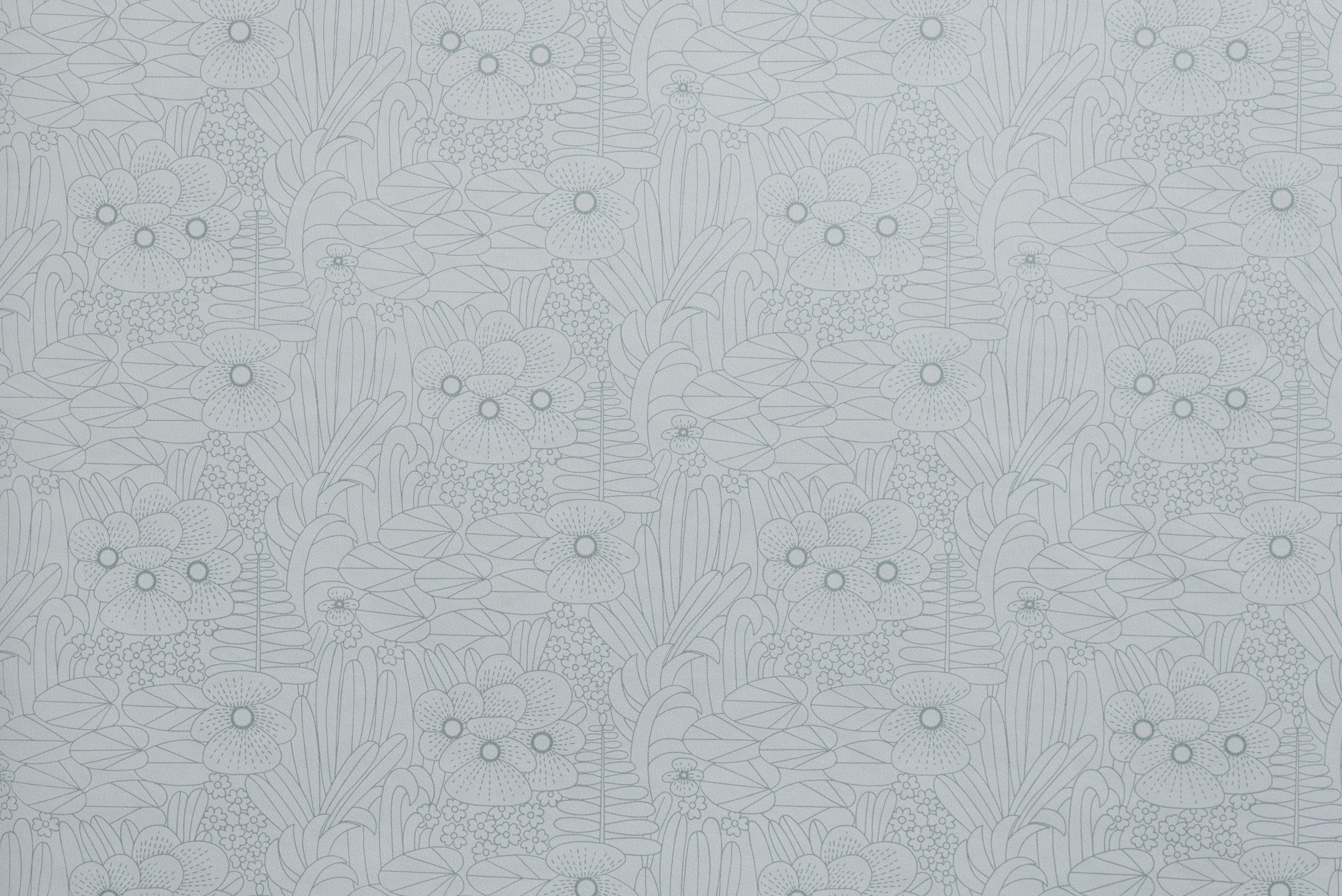 Eino muistuttaa kesäisistä retkistä lammen rantaan sekä hetkistä, kun on aikaa heitellä leipiä ja syödä eväitä laiturilla. Tapetissa on lumpeita, kukkia ja kasveja rauhallisessa vaaleanvihreässä sävyssä.