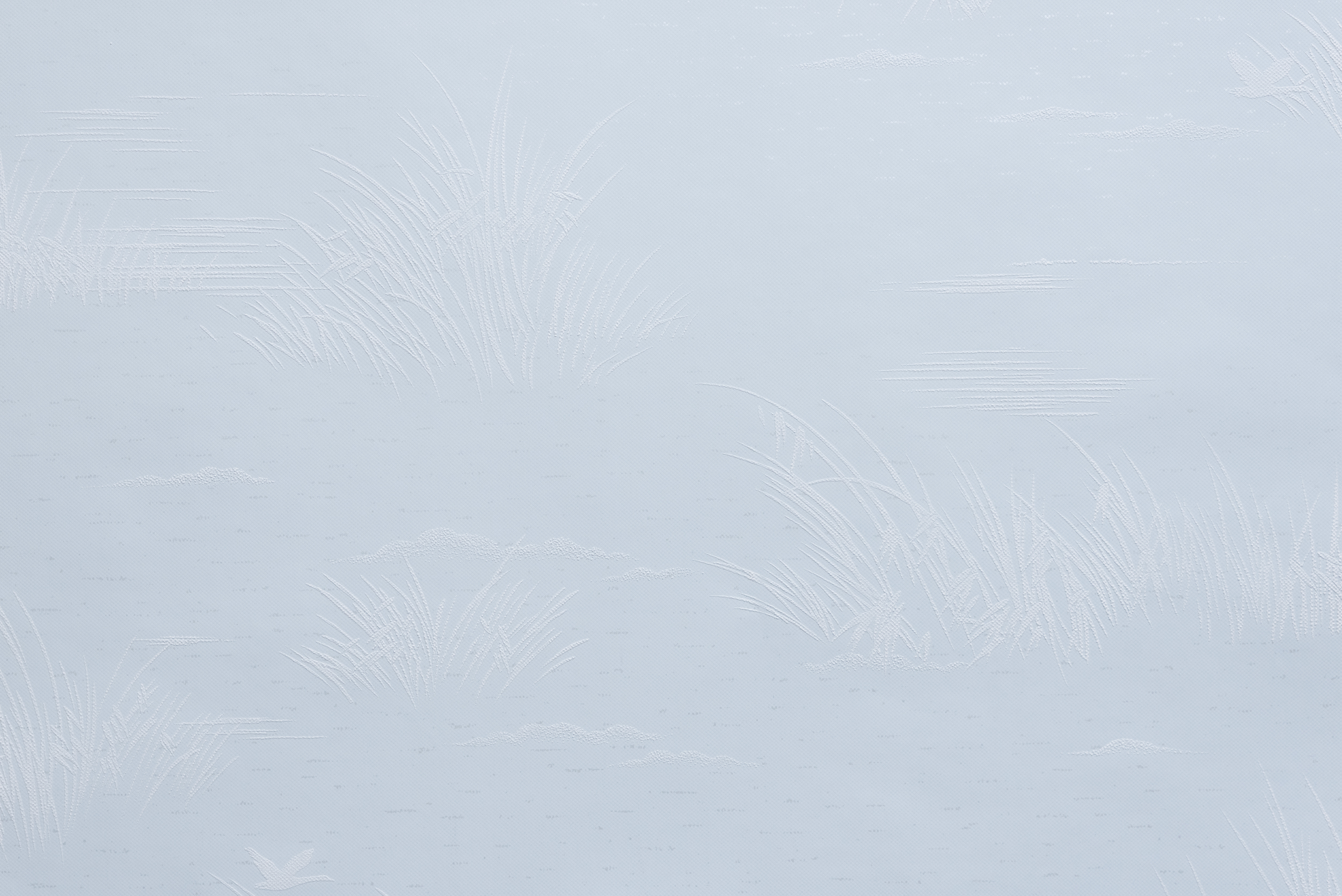 Emma luo ympärilleen rauhallisen rantamaiseman ja hetken, jolloin aika pysähtyy ja voi istua tuijottamassa usvaista järven pintaa. Tapetin sävy on vaaleansininen, kohokuviointi on valkoisella silkkipainatuksella ja taustalla on hentoja, päivänvalossa kauniisti kimmeltäviä aaltoja.