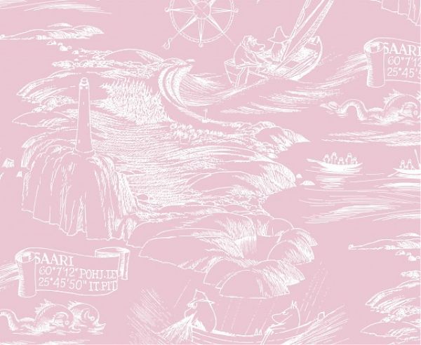 Tämä hurmaava tapetti tuo Muumien saariseikkailut osaksi kodin sisustusta lempeän romanttisella tavalla. Pehmeän vaaleanpunaisen sävy ja kevyet, käsin piirretyt valkoiset viivat muodostavat herkän kokonaisuuden, joka kertoo tarinoita meren aalloista, majakoista ja Muumipapan rohkeista tutkimusretkistä. Tapetin ilme on yhtä aikaa satumainen ja tyylikäs — täydellinen valinta tilaan, johon halutaan tuoda lämpöä, iloa ja ripaus seikkailun taikaa. Sopii niin lastenhuoneeseen kuin aikuisenkin rentoutusnurkkaan, jossa mieli saa vaeltaa Muumien mukana kohti horisonttia.
