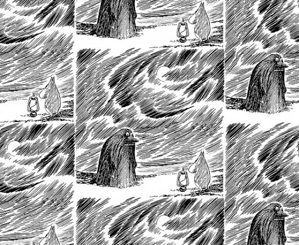 Tämä tapetti tuo seinille Tove Janssonin tunnelmallisen maailman, jossa Muumit kohtaavat salaperäisen ja kauniin luonnon voimat. Mustavalkoinen viivapiirros vangitsee yön hiljaisuuden ja lyhdyn lempeän valon, joka symboloi toivoa ja ystävyyttä myrskyn keskellä. Kontrastinen ja taiteellinen kuvitus tekee siitä rohkean sisustuselementin, joka puhuttelee sekä lapsia että aikuisia. Tapetti tuo kotiin taiteellista ilmettä, tarinallisuutta ja pohjoismaista melankolian kauneutta – täydellinen valinta, kun haluat seinillesi palaan Muumien syvällistä maailmaa.
