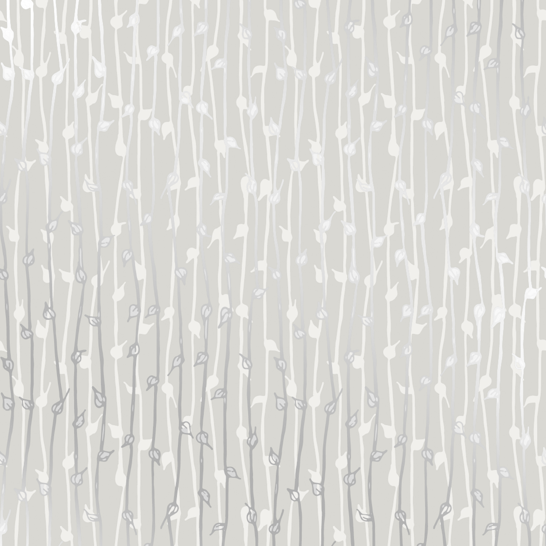 Tämä tapetti luo huoneeseen rauhallisen, luonnollisen rytmin ilman ylimääräistä hälyä. Pehmeät, pystysuuntaiset oksaviivat tuovat seinälle kevyttä liikettä ja ilmavuutta, aivan kuin hennot varvut kohoaisivat ylöspäin valoa kohti. Hillitty harmaan sävy tekee kokonaisuudesta harmonisen ja helposti yhdisteltävän niin vaaleaan kuin tummempaankin sisustukseen.