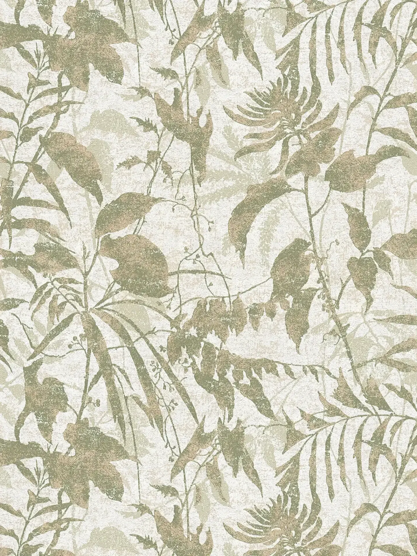 Luonnonmukainen ja rauhoittava tapetti, jossa kasviaiheinen kuvio herää eloon pehmeän hiekan ja sammaleenvihreän sävyissä. Hillitty kontrasti ja kauniisti kerrostettu lehtien siluettimainen muotoilu tuovat seinälle elävyyttä ja hienostunutta tekstuuria ilman, että kokonaisuus käy raskaaksi.