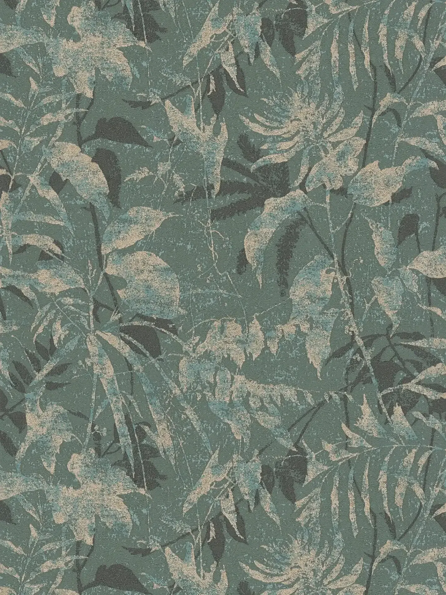 Tämä näyttävä tapetti tuo luonnon voiman ja syvyyden osaksi sisustusta. Tummanvihreä pohja ja sen päälle levittäytyvät kasviaiheet luovat rehevän, lähes maalauksellisen ilmeen, jossa valon ja varjon vivahteet tekevät pinnasta elävän ja mielenkiintoisen.