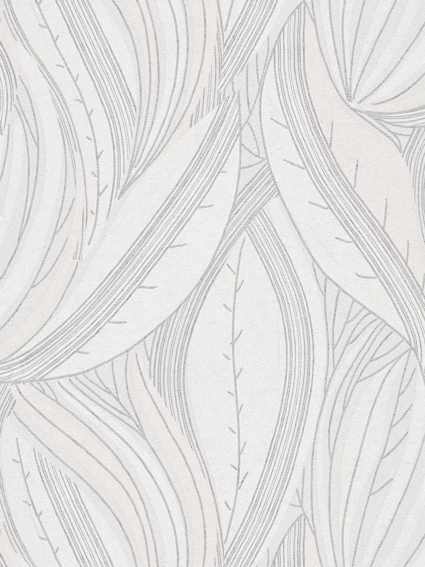 Tämä raikas ja moderni tapetti hurmaa hienostuneella lehtimäisellä kuviollaan ja hillityllä väripaletillaan. Pehmeät harmaan ja valkoisen sävyt tuovat seinään keveyttä ja luonnon inspiroimaa rytmiä, joka sopii täydellisesti skandinaaviseen sisustukseen.