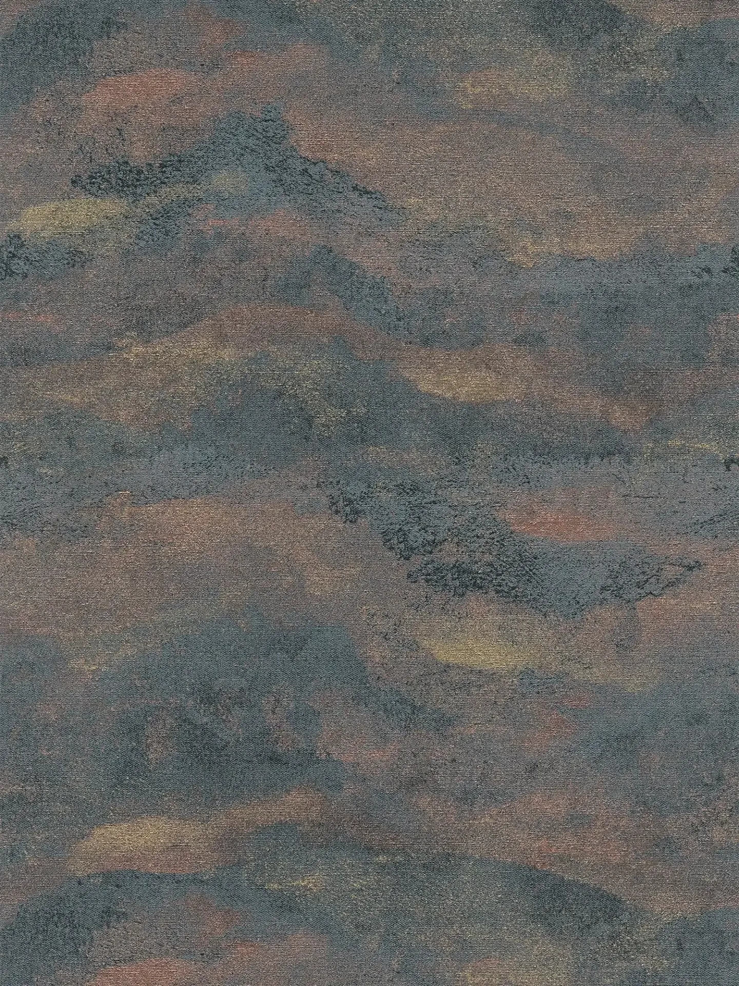 Tämä upea tapetti yhdistää syvät maanläheiset sävyt ja eläväisen, lähes taiteellisen pinnan, joka luo seinälle ainutlaatuisen tunnelman. Harmaan, ruskean ja kullanhohtoisten vivahteiden hienovarainen liike tuo mieleen luonnon kivipinnan, auringonlaskun valon ja savun utuisen liikkeen.