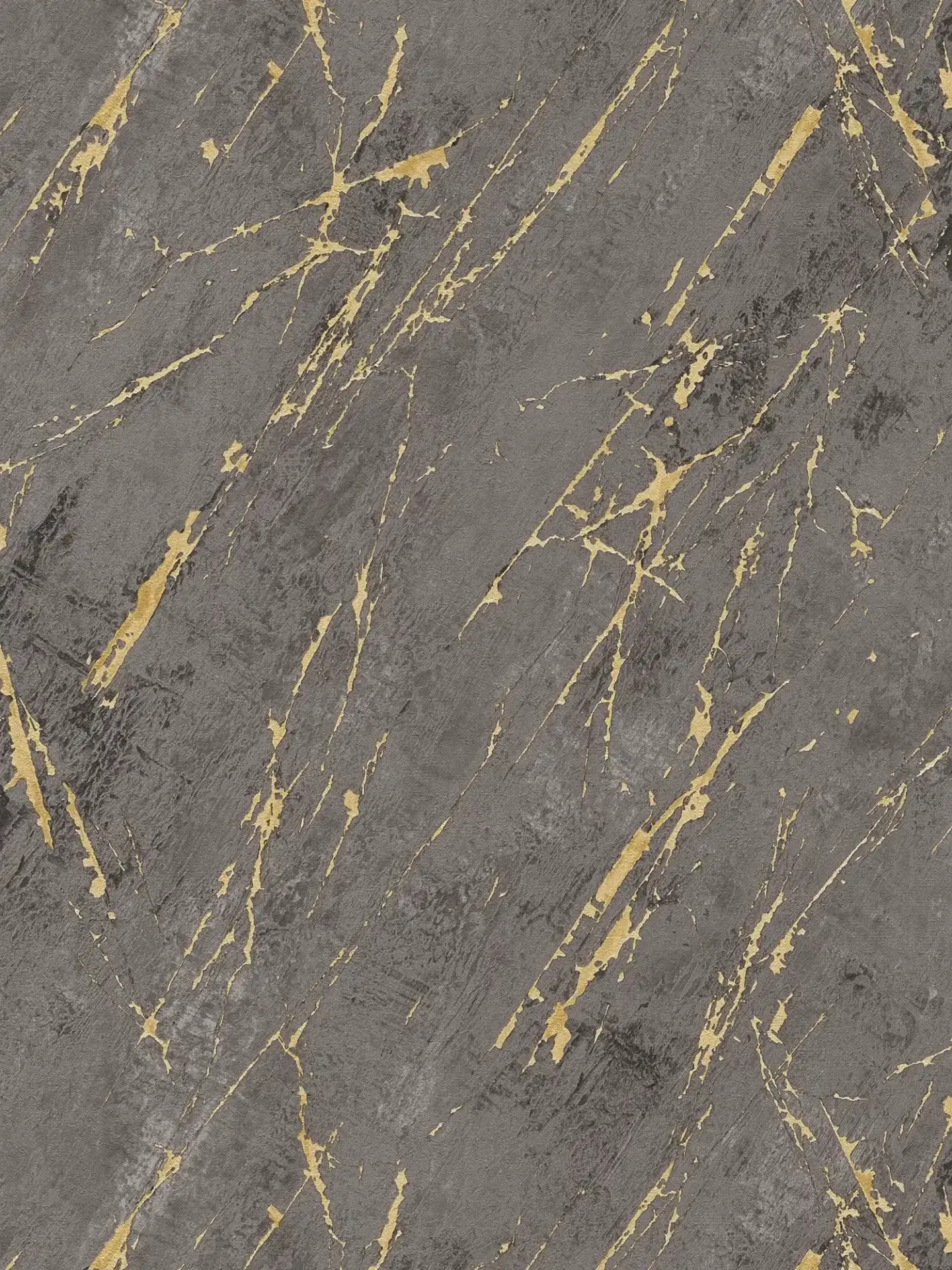 Tämä tapetti tuo seinille rohkean ja ylellisen ilmeen, jossa dramaattinen tummanharmaa pohja kohtaa kultaiset marmorijuonteet. Pinta näyttää kuin käsin viimeistellyltä kiveltä: rouhea, vivahteikas ja täynnä syvyyttä. Kulta hehkuu valoa vasten hienostuneesti, tuoden tilaan lämpöä ja modernia glamouria.